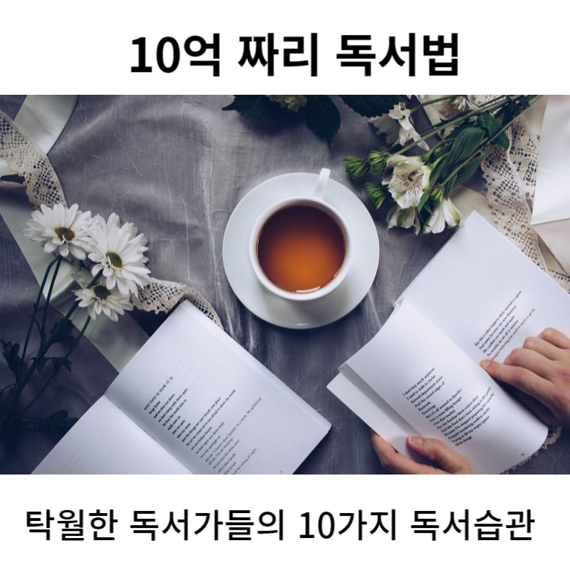 10억짜리 독서법: 어떻게 책을 읽고 자기 것으로 만들고 삶을 변화시킬 수 있는지 그 방향을 알려줍니다. 책 읽기는 좋아하는데 삶의 변화가 별로 없으신 분들은 이 책을 한 번 읽어보시면 많은 도움이 될 듯합니다. 오늘은 이 책의 내용 중에서 탁월한 독서가들의 10가지 독서 습관에 대해서 포스팅해 봅니다.