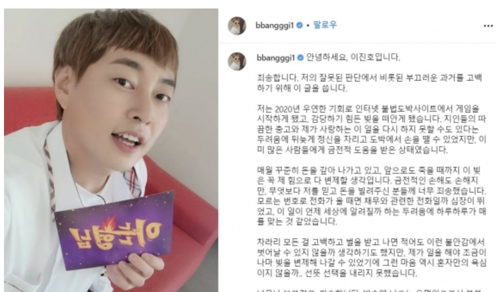 개그맨 이진호, 인터넷 불법 도박으로 인한 채무 고백