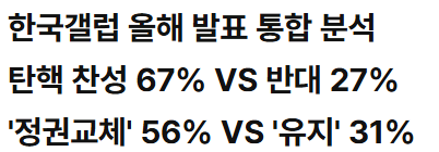 - 탄핵 찬성: 67%