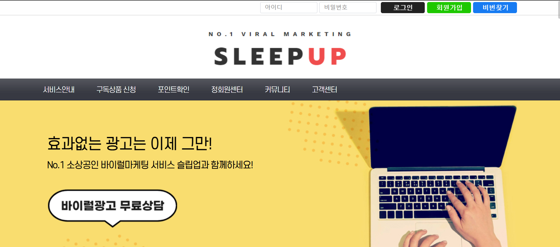 슬립업은 소상공인들이 효과적인 바이럴 마케팅을 통해 매출을 증대시킬 수 있도록 돕는 플랫폼입니다. 슬립업은 다양한 마케팅 채널을 통해 광고를 진행하며, 이를 통해 부업자들에게 수익을 창출할 기회를 제공합니다.