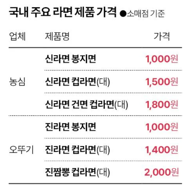 실제 사례로 보는 라면 가격