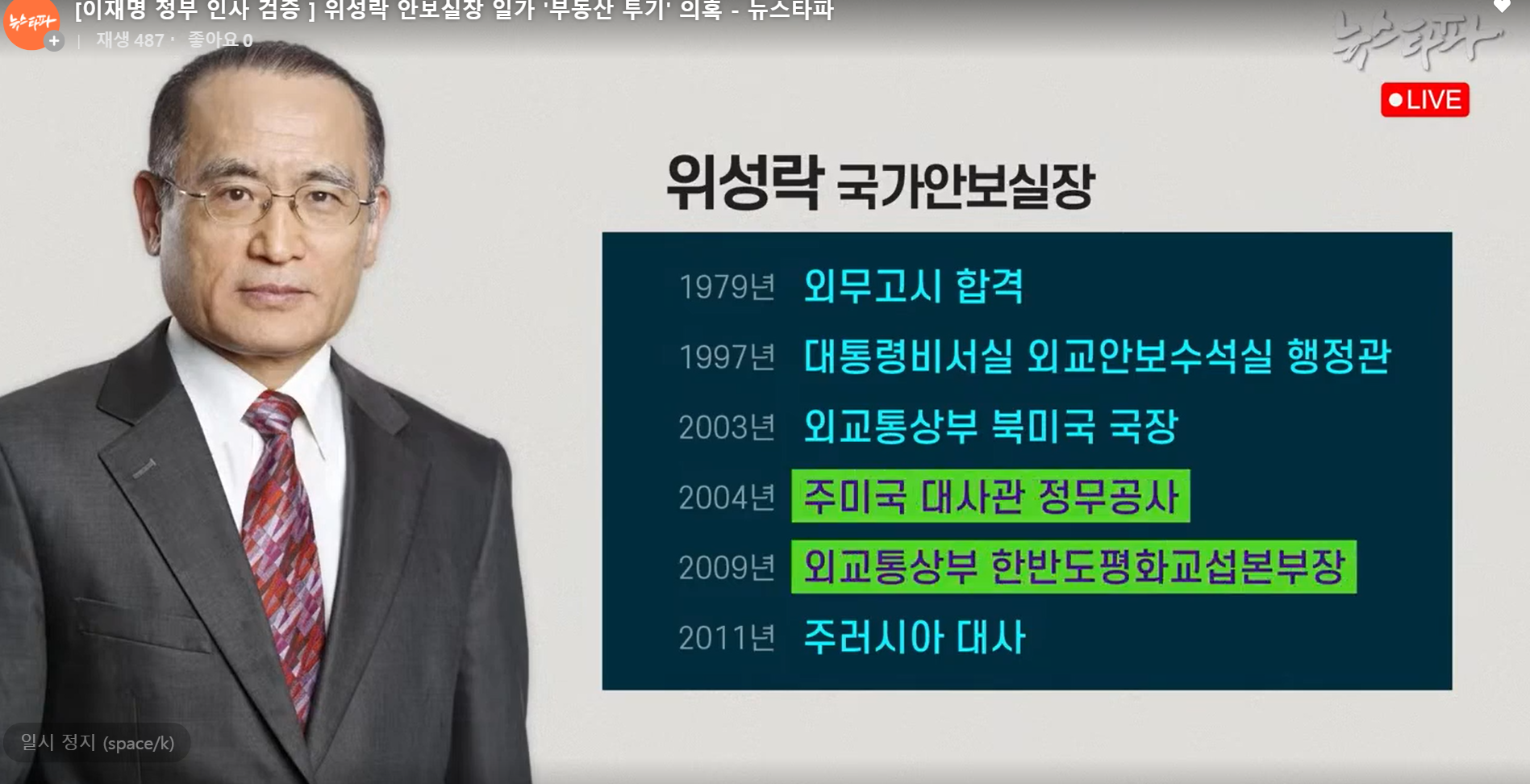 뉴스타파, 이재명 정부 초대 내각 인사 검증 결과 공개: 위성락 국가안보실장 일가 부동산 투기 의혹 집중 조명