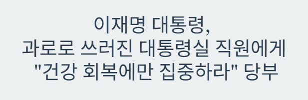 이재명 대통령, 과로로 쓰러진 대통령실 직원에게 "건강 회복에만 집중하라" 당부