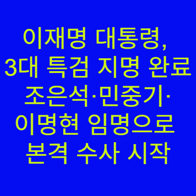 연관키워드: 이재명 대통령, 3대 특검, 조은석, 민중기, 이명현, 내란 특검, 김건희 특검, 채해병 특검, 윤석열, 특별검사, 진상규명, 더불어민주당, 조국혁신당, 국정농단, 12.3 비상계엄, 순직 해병, 명태균, 건진법사, 특검법, 수사 개시, 정치적 중립성, 진실 규명, 법치주의, 민주주의, 투명성, 공정성, 책임성