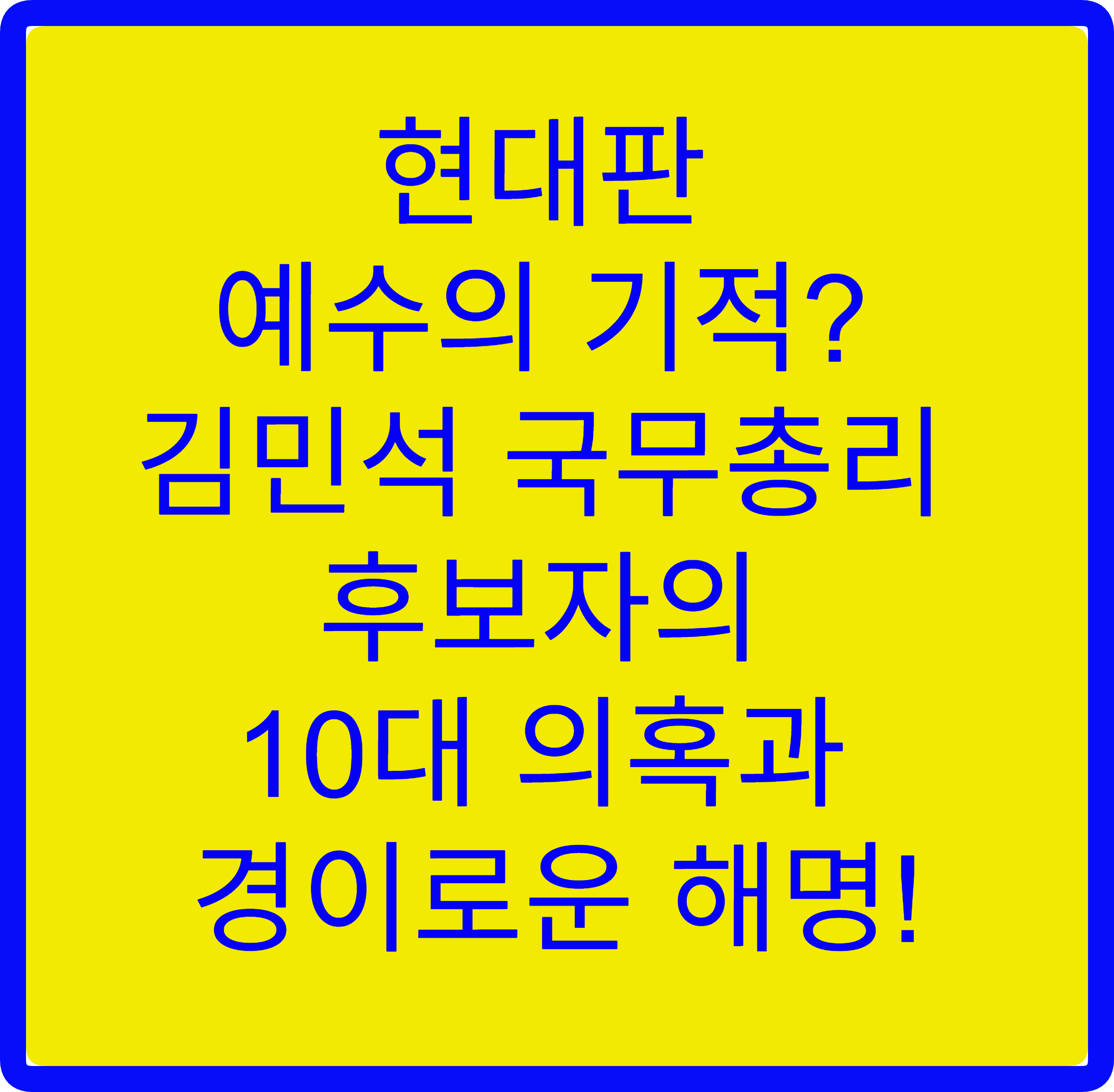 김민석 국무총리 후보자를 둘러싼 10대 의혹과 그에 대한 해명들은 마치 현대판 예수의 기적을 연상시킵니다. 우연과 운, 그리고 절묘한 타이밍의 연속은 상식적인 선에서 납득하기 어려운 부분이 많습니다. 물론 모든 의혹이 사실이라는 단정은 경계해야 합니다. 하지만 중요한 것은 국민이 그의 해명을 얼마나 납득하고 신뢰할 수 있느냐는 것입니다.