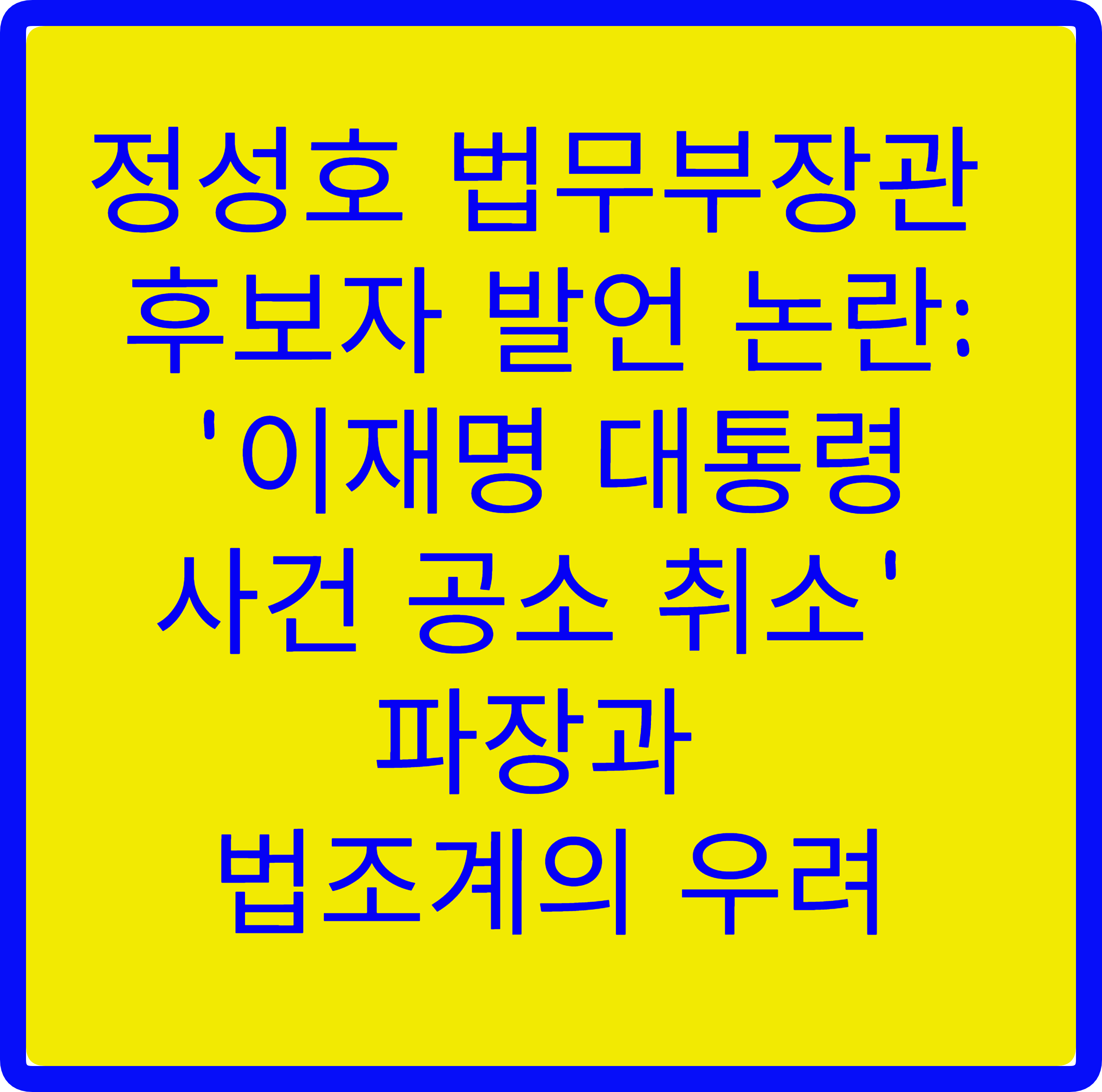 연관 키워드: 정성호 법무부장관 후보자, 이재명 대통령 사건, 공소 취소, 법조계 논란, 법치주의, 검찰 독립성, 사법 정의, 헌법, 형사소송법, 법무부장관 인사청문회, 검찰 개혁, 사법 신뢰, 정치적 중립성, 기소권