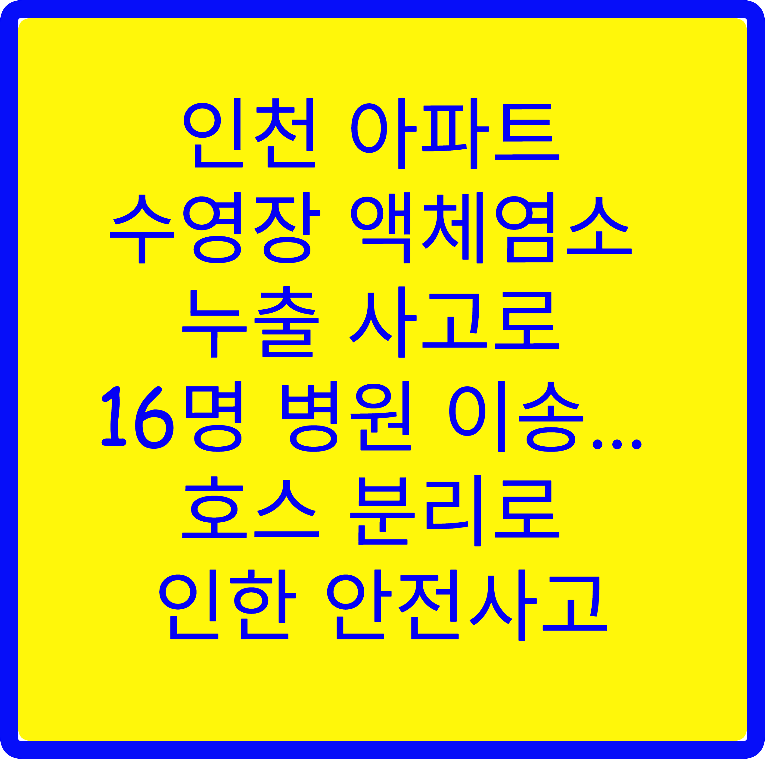인천 아파트 수영장 액체염소 누출 사고로 16명 병원 이송... 호스 분리로 인한 안전사고