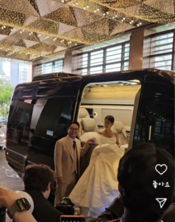 김준호의 한 지인이 자신의 인스타그램에 올린 영상을 통해 두 사람의 결혼식 현장이 최초로 공개되었습니다. 영상 속에서 김준호는 차량에서 먼저 내린 후 김지민을 다정하게 에스코트하는 모습을 보여주었으며, 환한 미소를 지으며 행복한 기색을 감추지 못했습니다.