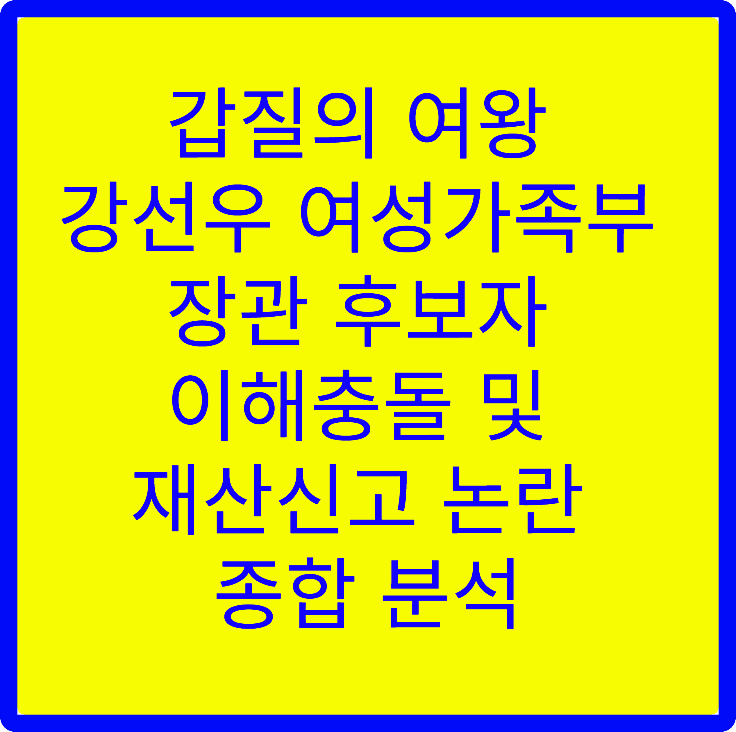 갑질의 여왕 강선우 여성가족부 장관 후보자 이해충돌 및 재산신고 논란 종합 분석