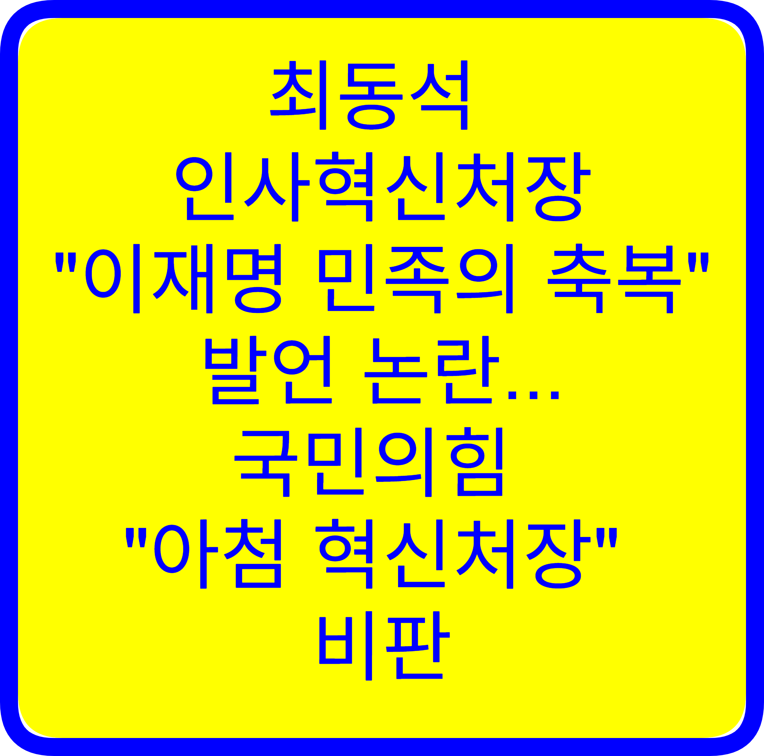 최근 임명된 최동석 인사혁신처장이 과거 발언들로 인해 정치권의 뜨거운 논란에 휩싸이고 있습니다. 특히 이재명 대통령을 "민족의 축복"이라고 평가한 발언이 주목받으면서, 야당인 국민의힘은 강력한 비판의 목소리를 높이고 있습니다.