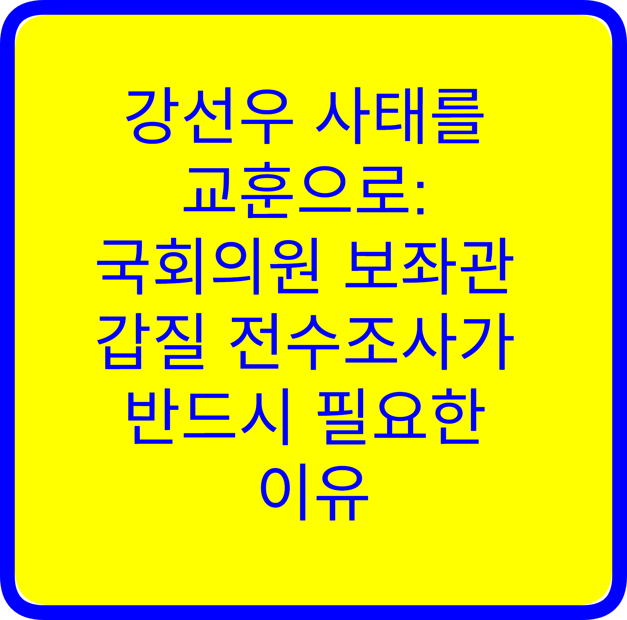 국회의원 보좌관 갑질에 대한 전수조사는 선택이 아닌 필수입니다. 국민의 신뢰를 회복하고, 숨겨진 피해자들을 구제하며, 구조적 문제를 해결하기 위해서는 반드시 필요한 조치입니다.