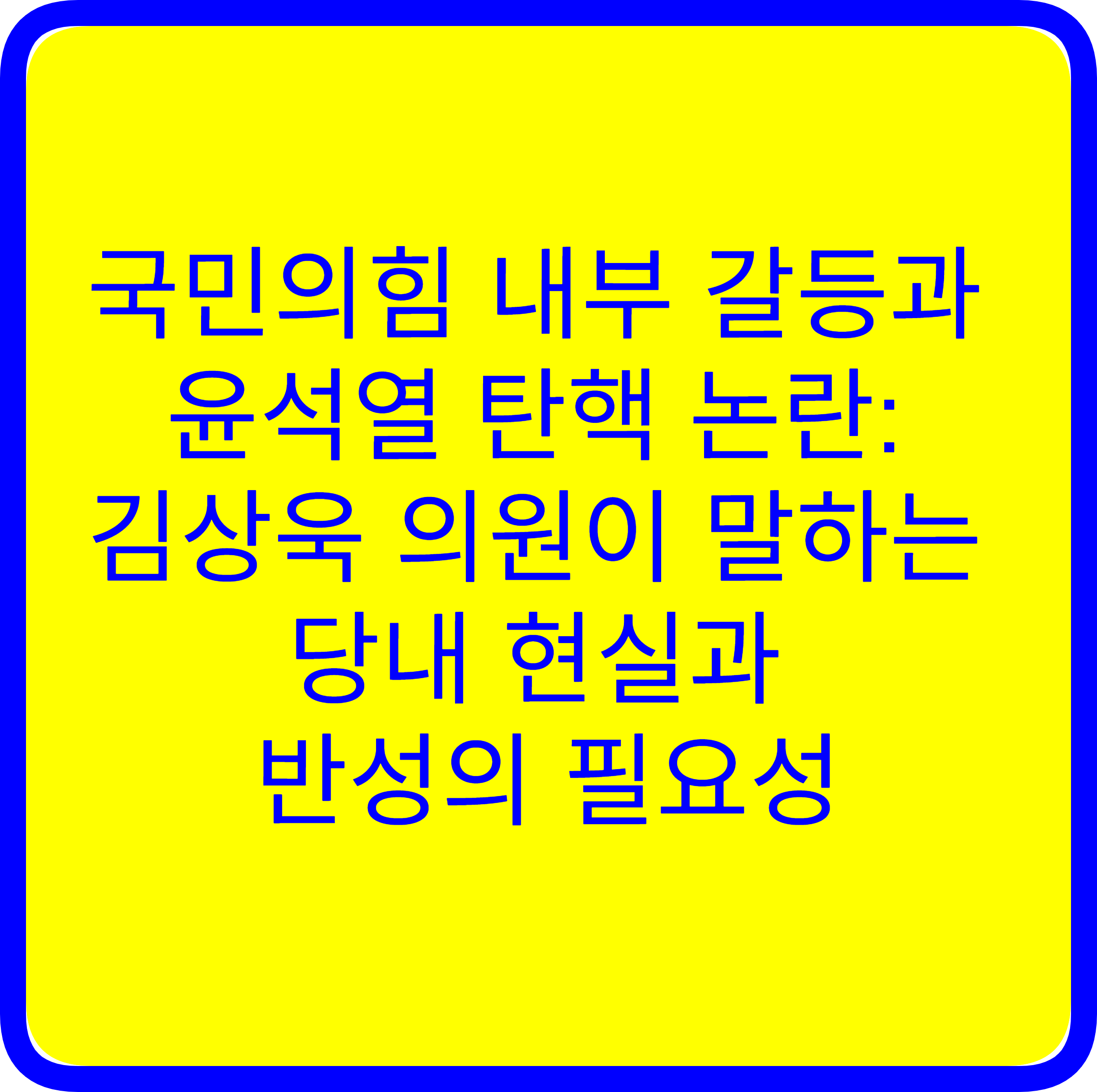 국민의힘 내부 갈등과 윤석열 탄핵 논란: 김상욱 의원이 말하는 당내 현실과 반성의 필요성