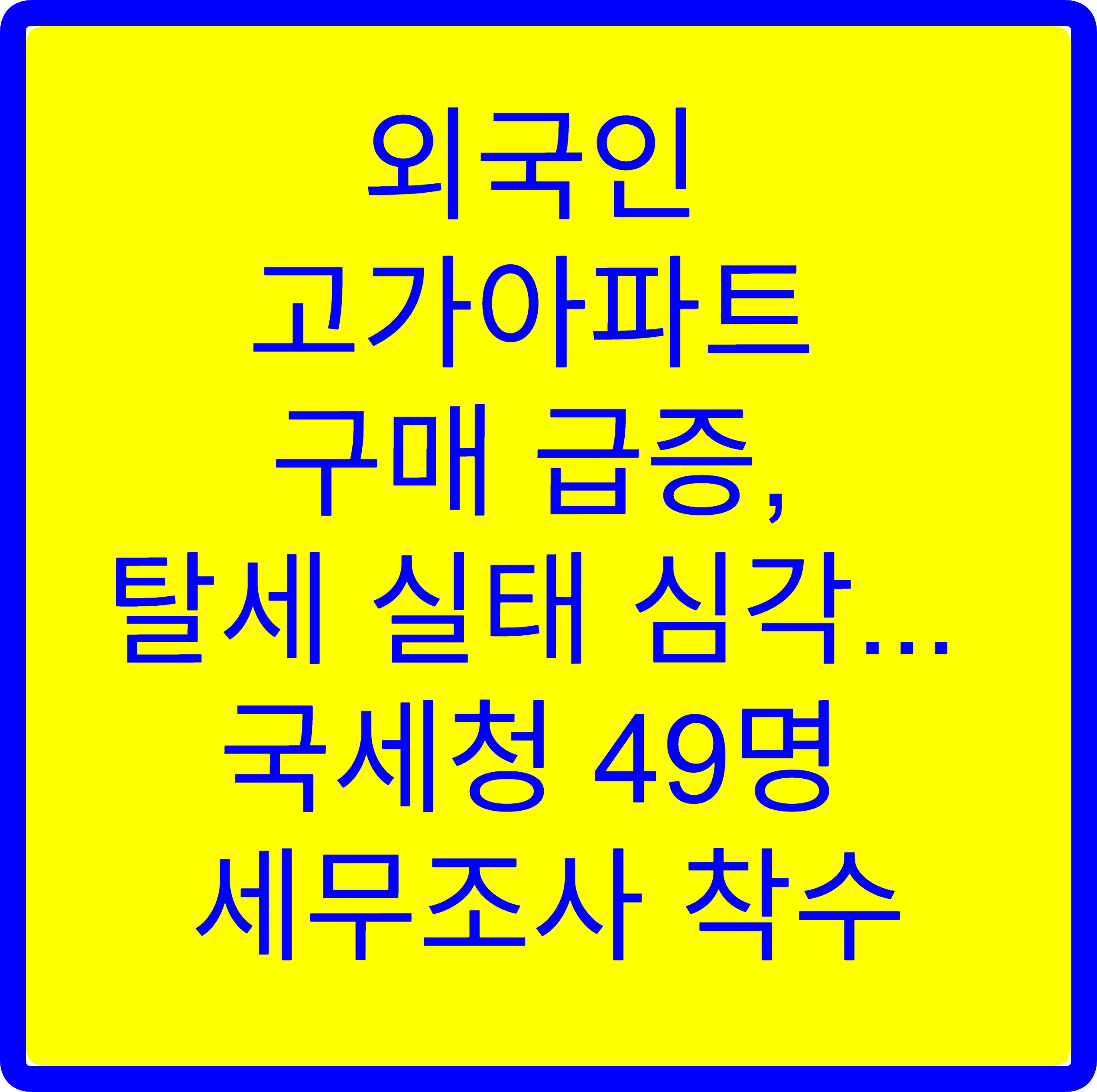 외국인 고가아파트 구매 급증, 탈세 실태 심각... 국세청 49명 세무조사 착수