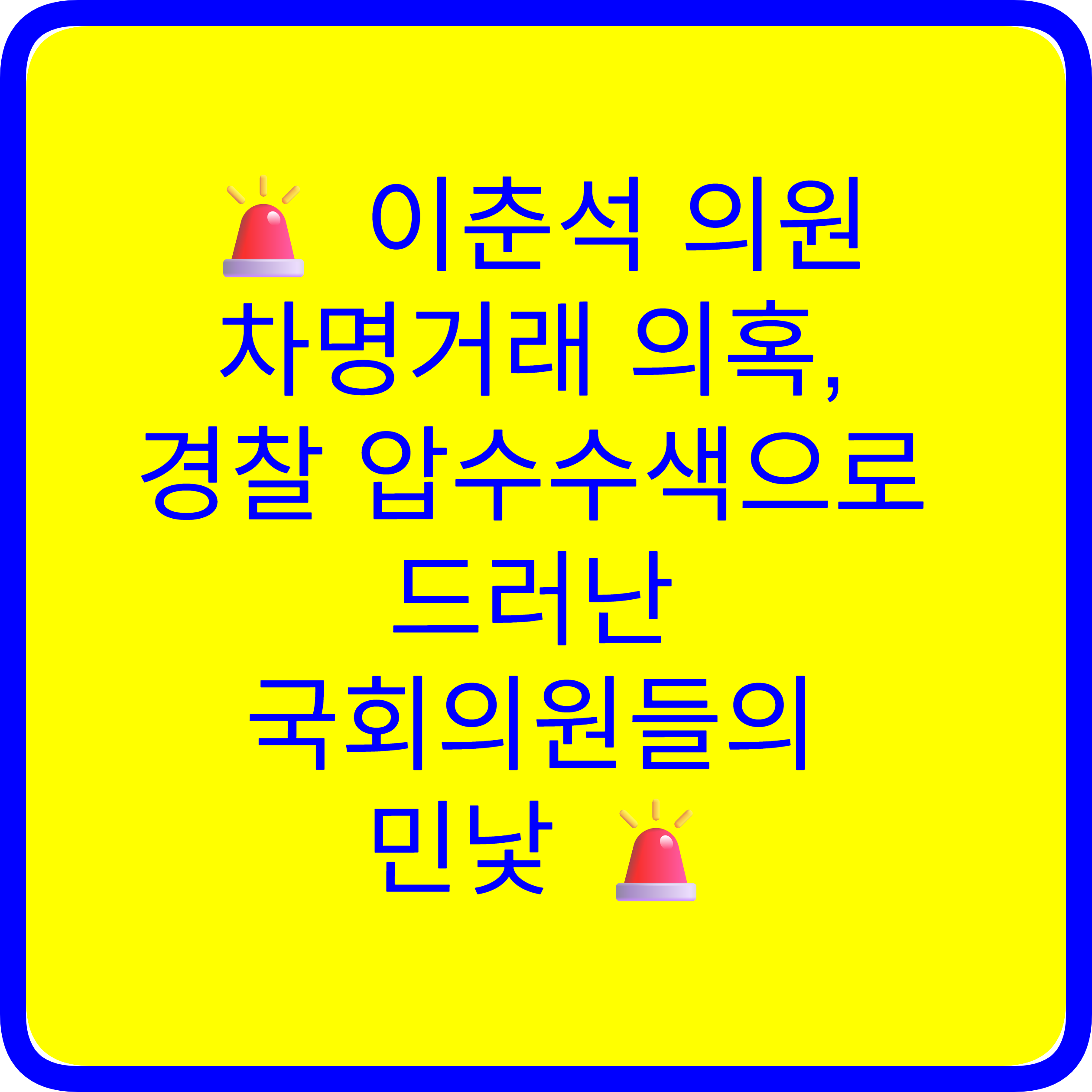 🚨 이춘석 의원 차명거래 의혹, 경찰 압수수색으로 드러난 국회의원들의 민낯 🚨