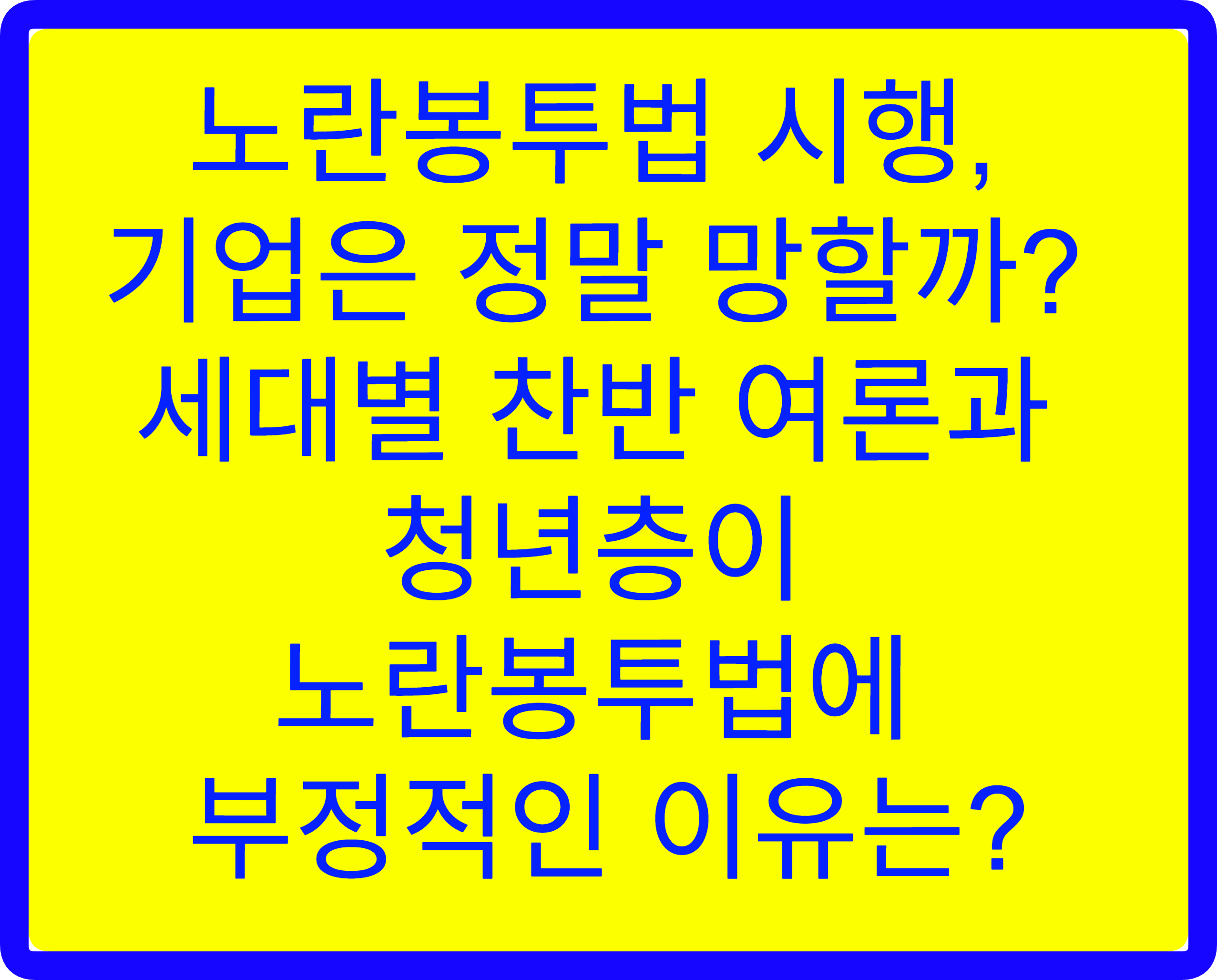 - 자영업자: 반대 의견이 많음 (사장님 입장에서 부담 증가 우려)