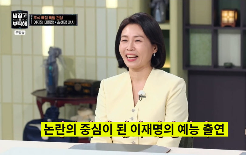 2025년 6월 4일에 임기를 시작한 이재명 대통령은 취임 후 첫 추석 명절을 맞아 부인 김혜경 여사와 함께 JTBC의 인기 예능 프로그램 '냉장고를 부탁해'(이하 '냉부해')에 출연하여 또 다른 정치적 논란의 중심에 섰습니다.