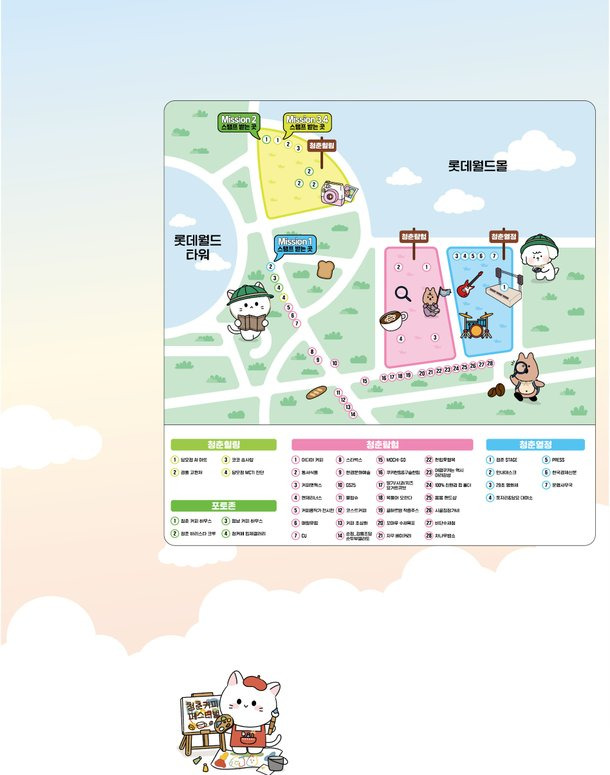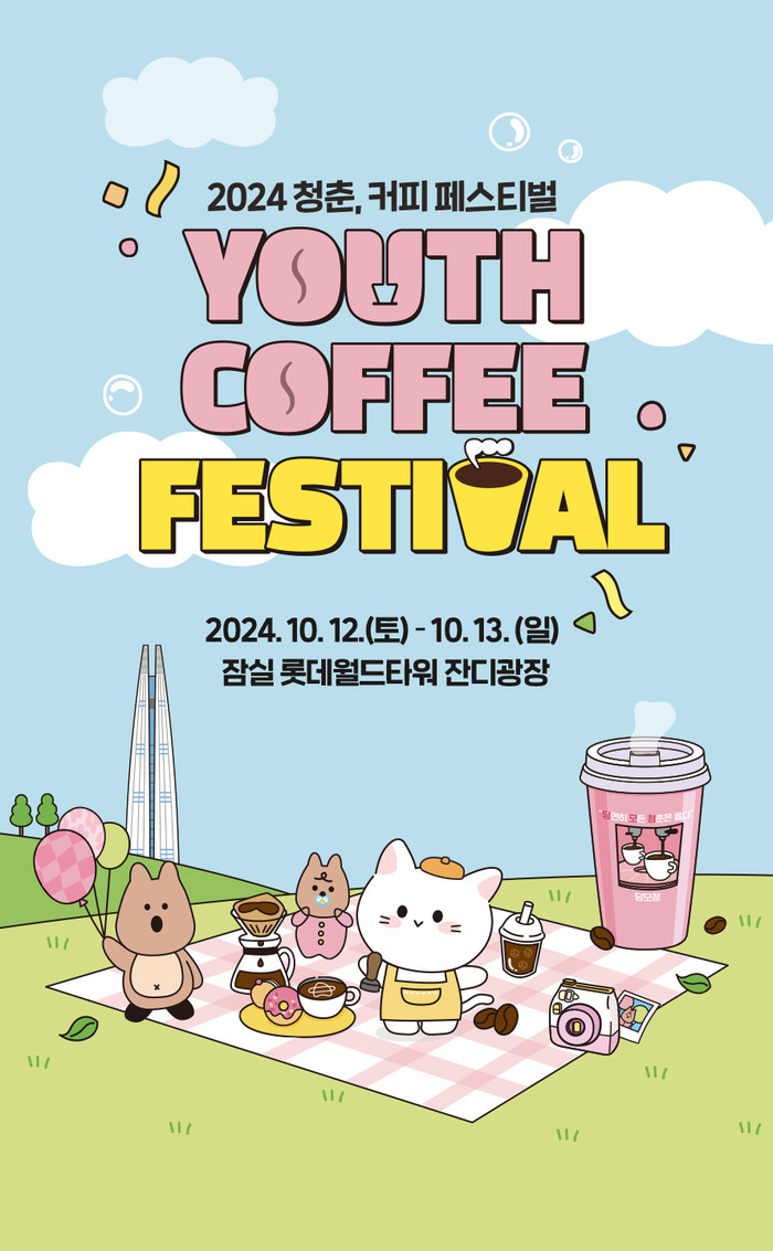 2024 청춘, 커피 페스티벌은 서울 잠실 롯데월드타워에서 열리는 대규모 커피 축제입니다. 이 페스티벌은 커피 애호가들뿐만 아니라, 다양한 문화와 예술을 즐기고 싶은 모든 이들에게 열려 있습니다. 귀여운 캐릭터들이 등장하는 포스터와 함께, 많은 이들의 기대를 모으고 있습니다.